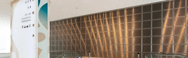 Versatilità, stabilità ed proprietà estetiche uniche rendono i tessuti metallici per architettura i materiali ideali per progettare partizioni interne.
